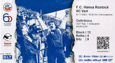 01/11/25, 16:30 Uhr (MEZ) 3.Liga 2025/26 - 13.Spieltag FC Hansa Rostock - SC Verl 2:2 Zuschauer: 24.407 (Kapazität: 29.000) |
