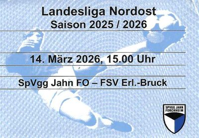 14/03/26, 15:00 Uhr (MEZ) Landesliga Bayern Nordost 2025/26 - 24.Spieltag SpVgg Jahn Forchheim - FSV Erlangen-Bruck 1:1 Zuschauer: 300 (Kapazität: 2.000) |