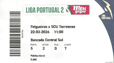 22/03/26, 12:00 Uhr (MEZ) Segunda Liga 2025/26 - 27.Spieltag FC Felgueiras - SC União Torreense 0:3 Zuschauer: 1.210 (Kapazität: 7.540) |
