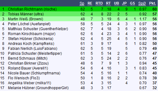 Tippmeister der Gesamtwertung - Saison 2014 / 15 |
